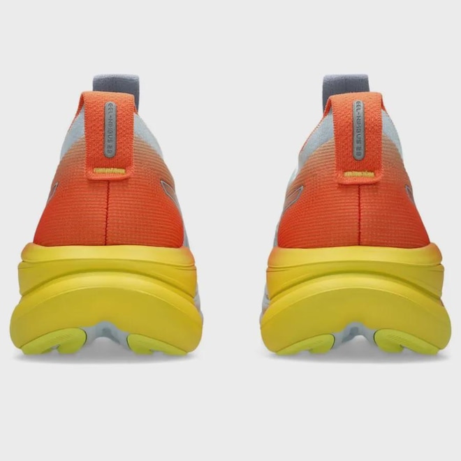 O GEL-NIMBUS™ 28 é um dos modelos mais confortáveis da linha de tênis de corrida da ASICS. Agora cerca de 25 g mais leve que a versão anterior, este tênis continua oferecendo amortecimento de alta performance, garantindo uma passada mais suave em corridas longas. A entressola possui amortecimento FF BLAST™ PLUS e tecnologia PureGEL™. Esses elementos contribuem para um amortecimento leve e macio, dando a sensação de estar pisando nas nuvens. O cabedal é confeccionado em malha tecnológica, projetada para se ajustar confortavelmente aos pés e proporcionar sensação de bem-estar. Cabedal em malha tecnológica. Com malha leve e respirável, reduz a necessidade de revestimentos adicionais. Tecnologia PureGEL™. Tecnologia GEL™ reformulada, agora mais macia, mantendo todas as propriedades de desempenho que consagraram a linha. Apresenta maciez aproximadamente 65% superior em relação à tecnologia GEL™ padrão. Amortecimento FF BLAST™ PLUS. Espuma de entressola com amortecimento que proporciona a sensação de pisar nas nuvens e passada responsiva mais leve que a FF BLAST™. Palmilha OrthoLite™ X-55. Palmilha de alta qualidade que proporciona desempenho de amortecimento e controle da umidade para manter o calçado mais seco e fresco. Detalhes refletivos. Refletividade aprimorada para melhor visibilidade em treinos noturnos ou matinais. Solado HYBRID ASICSGRIP™. Combina a borracha ASICSGRIP™ e os materiais AHARPLUS™ para oferecer aderência avançada em diversos tipos de terreno e maior durabilidade. Pelo menos 75% do cabedal é feito com material reciclado, com o objetivo de diminuir resíduos e emissões de carbono. Com tingimento por solução, a palmilha contribui para a redução de aproximadamente 33% no consumo de água e 45% nas emissões de carbono, em relação ao processo tradicional.
