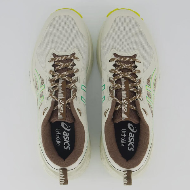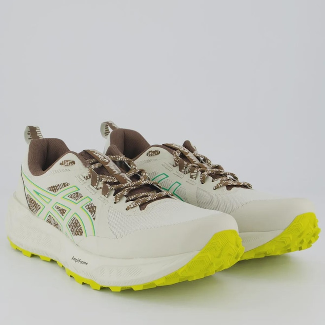 TecnologiasGel®: Exclusiva tecnologia de amortecimento a base de GEL que proporciona máxima absorção de impacto das passadas.AmpliFoam: Entressola mais leve que o EVA, oferecendo maior amortecimento e conforto, gerando mais flexibilidade e durabilidade durante as corridas.Composição cabedal (parte superior): Material têxtil com partes em sintéticoForro: Têxtil com acolchoamento reforçado no calcanharPalmilha: Em EVA, forrada, moldada e removívelSolado: Borracha tratorada antiderrapante, coladoAltura da Sola: 5 cmEntressola: EVA leve e macioLingueta: Macia e levemente acolchoadaCor predominante: Off-WhiteIndicado para: TrilhaGênero: MasculinoOrigem: ImportadaAjuste: CadarçoPeso aproximado: 580g o par nº 40