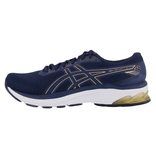 Experimente o Gel Sparta 2 da Asics, um tênis projetado para atletas que buscam unir conforto e segurança em seus treinos. Com cabedal em material têxtil e detalhes nas cores azul e dourado, ele oferece solado antiderrapante e excelente estabilidade para que você conquiste seus objetivos com confiança.