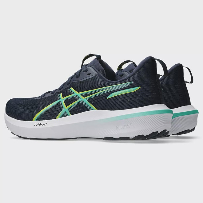 TecnologiasFF BLAST™: Espuma leve e responsiva na entressola, que oferece sensação de pisar nas nuvens com ótimo amortecimento e retorno de energia.PureGEL™: Versão aprimorada do GEL™, cerca de 65% mais macia, proporcionando absorção de impacto superior e mais suavidade nas passadas.3D GUIDANCE SYSTEM™: Sistema de estabilidade adaptável, construído com base na geometria do calçado para manter o controle e o equilíbrio durante a corrida.Engineered Jacquard Mesh: Cabedal em malha leve e respirável que dispensa costuras extras, promovendo conforto e ventilação.Palmilha Hybrid Max Lite: Oferece maior amortecimento, respirabilidade e controle de umidade.AHAR™