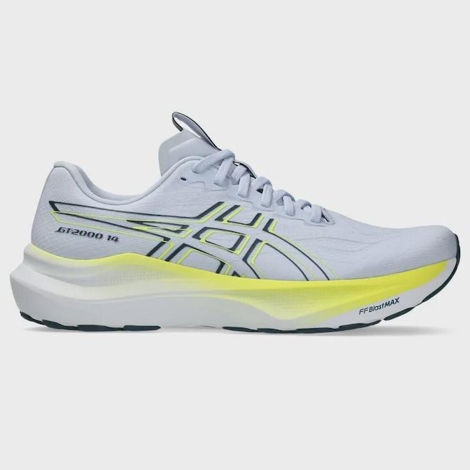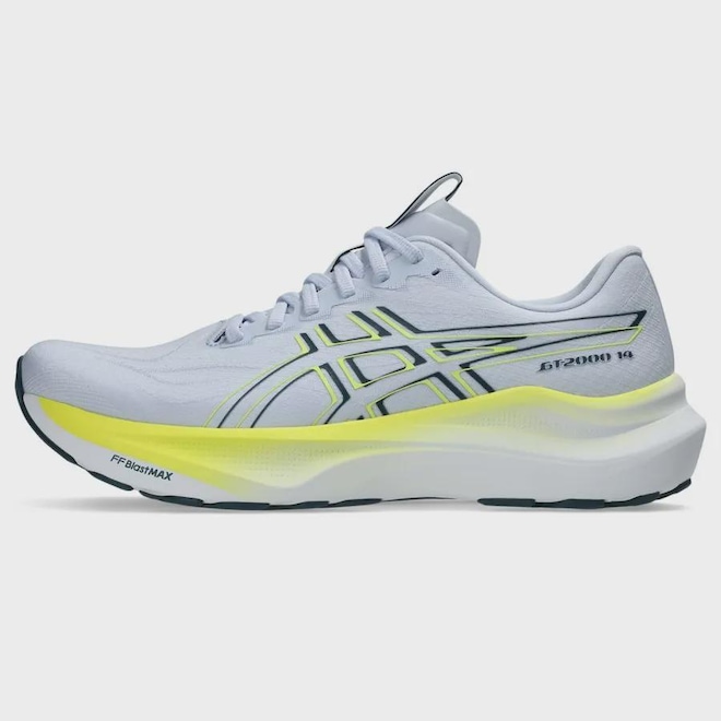 O GT-2000™ 14 foi desenvolvido para oferecer uma corrida mais dinâmica, com suporte e conforto do início ao fim.Uma cápsula em formato de trampolim está posicionada no solado, promovendo a passada mais ágil e responsiva.A entressola agora conta com a espuma FF BLAST™ MAX, que garante aterrissagens suaves como pisar as nuvens e um impulso cheio de energia a cada passada.Woven meshCabedal feito de material leve que reduz a necessidade de costuras adicionaisSistema de ajuste da língueta reforçadaMelhora o ajuste do mediopé e reduz o deslizamento da linguetaFormato Trampolim do soladoNosso design de solado e entressola captura mais retorno de energia para um efeito de salto aprimorado durante o impulso do pé.3D GUIDANCE SYSTEM™Sistema de estabilidade adaptável e sob demanda, obtido por meio da geometria do calçado e mantando o controle das passadas.Tecnologia PureGEL™Versão atualizada da nossa tecnologia GEL™. Aproximadamente 65% mais macio em comparação com a tecnologia GEL™ padrão.Tecnologia FF BLAST™ MAXUma das espumas de entressola mais energéticas, complementada com uma maciez semelhante à de uma nuvem tem um retorno de energia ainda mais responsivo a cada passo.Palmilha OrthoLite™ X-30Palmilha que proporciona amortecimento e gerenciamento de umidade para um ambiente mais fresco e seco aos pés.AHARPLUS™ no soladoA borracha de alta resistência à abrasão da ASICS, localizada na área do calcanhar, é aproximadamente três vezes mais durável do que as borrachas de solado padrão.AHAR™ LO no soladoUma borracha de menor densidade aplicada em áreas-chave do solado para maior aderência e tração ??sem comprometer a durabilidade.Detalhes refletivosProjetado para ajudar a melhorar a visibilidade em condições de pouca luzPelo menos 50% do material principal do cabedal é feito com conteúdo reciclado para reduzir o desperdício e as emissões de carbono.A palmilha é produzida com o processo de tingimento em solução que reduz o uso de água em aproximadamente 33% e as emissões de carbono em aproximadamente 45% em comparação com a tecnologia de tingimento convencional-