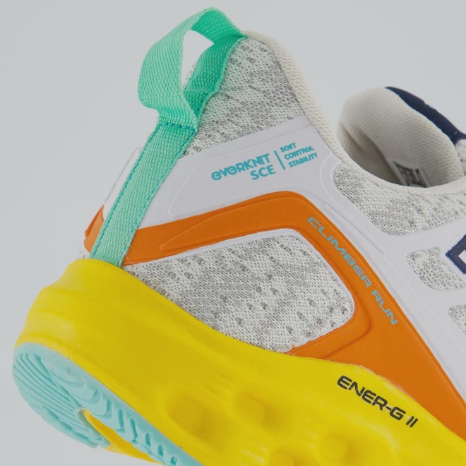 Everknit: Tecido tramado através de um combinação de fios com áreas de maior abertura em pontos estratégicos para melhorar a respirabilidade do pé, fornecendo um calce ajustado, além de muito conforto.