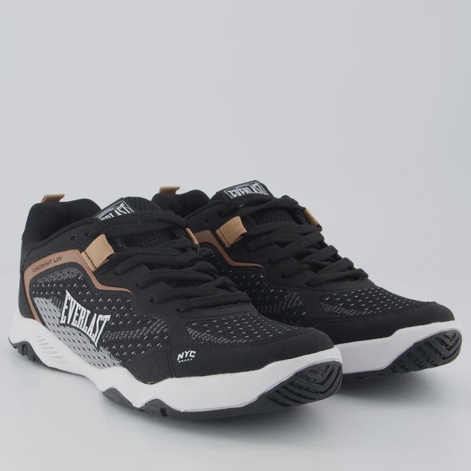 Composição cabedal (parte superior): Confeccionado em têxtil e sintético Palmilha: EVA forrada e removível; facilita na higienização Forro: Material têxtil com acolchoamento reforçado Solado: Borracha antiderrapante Entressola: Borracha resistente Lingueta: Macia e acolchoada Cor predominante: Preta Gênero: Masculino Origem: Nacional Ajuste: Cadarço Peso aproximado: 690g o par nº 40