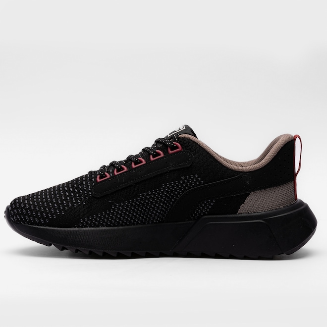 O cabedal em material sintético e tecido mesh oferece respirabilidade e suporte, enquanto a entressola macia em EVA garante amortecimento para todas as suas passadas.