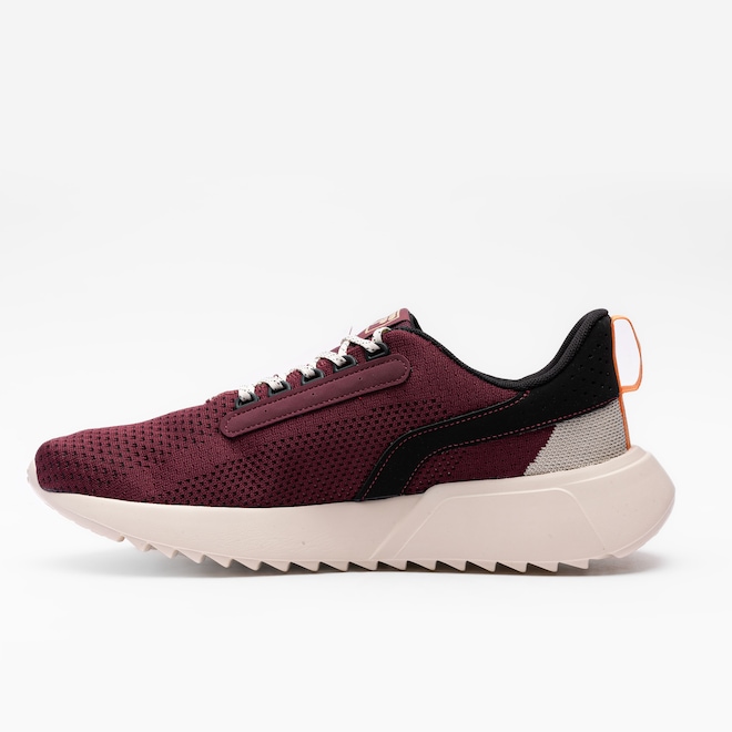 O cabedal em material sintético e tecido mesh oferece respirabilidade e suporte, enquanto a entressola macia em EVA garante amortecimento para todas as suas passadas.