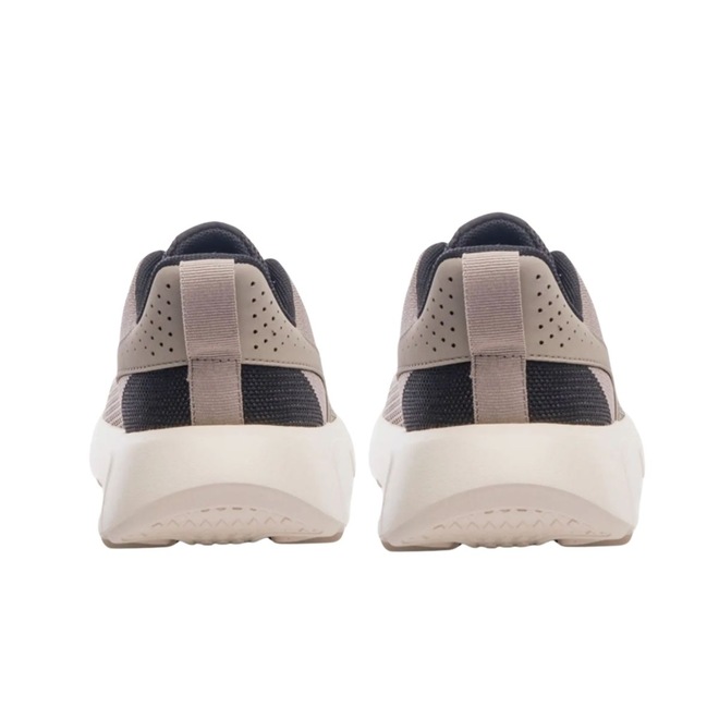 Cabedal: Mesh localizado com diferentes tipos de tramas e sobreposições em material sintético