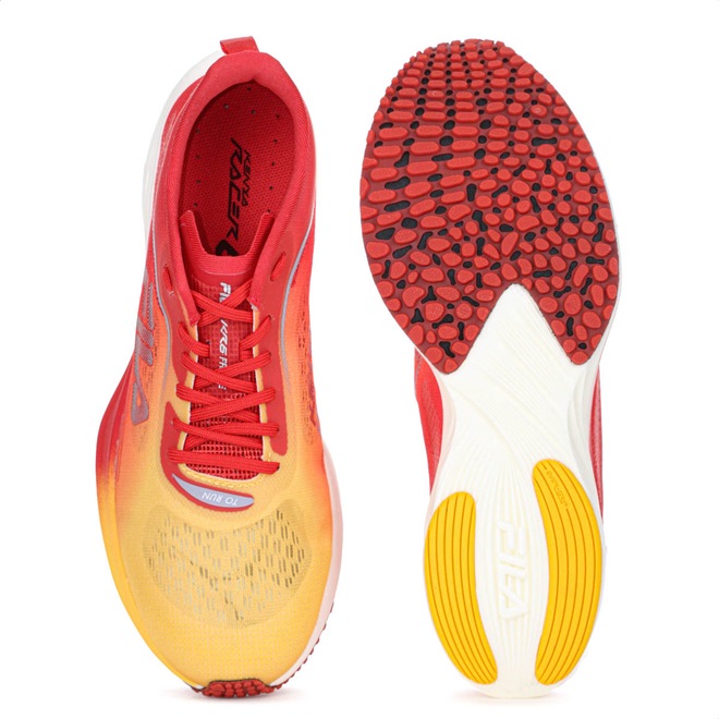 Leveza extrema para quem corre com velocidade! Tênis Fila KR6 Frame Vermelho e Amarelo - Masculino Ficha Técnica: Marca: Fila Gênero: Masculino Cor: Vermelho e amarelo Cabedal: Micromesh leve, respirável e resistente com detalhes refletivos; 85% têxtil, 15% PVC Palmilha: Anatômica em EVA e têxtil Entressola: SPEED TECH FOAM com alta responsividade e retorno de energia Solado: EVER-GRIP com grip superior e alta durabilidade; 63% EVA, 20% TPU, 15% borracha, 2% têxtil Forro: Têxtil Fechamento: Cadarço Indicação: Corridas, treinos e provas de velocidade de 5 a 10 km Detalhes: Refletivos em alto relevo para maior segurança em ambientes de baixa luz; nome da marca nas laterais Supere seus recordes com o Fila KR6 Frame! Este modelo entrega leveza máxima, ideal para corredores que buscam desempenho em provas de 5 a 10 km. Porque investir: A entressola com tecnologia SPEED TECH FOAM oferece retorno de energia potente a cada passada, enquanto o solado EVER-GRIP garante tração superior. O cabedal em micromesh é ultra respirável e os detalhes refletivos ampliam sua segurança. Performance, conforto e inovação ao seu alcance. Conteúdo da embalagem: 1 par de Tênis Fila KR6 Frame Vermelho e Amarelo - Masculino