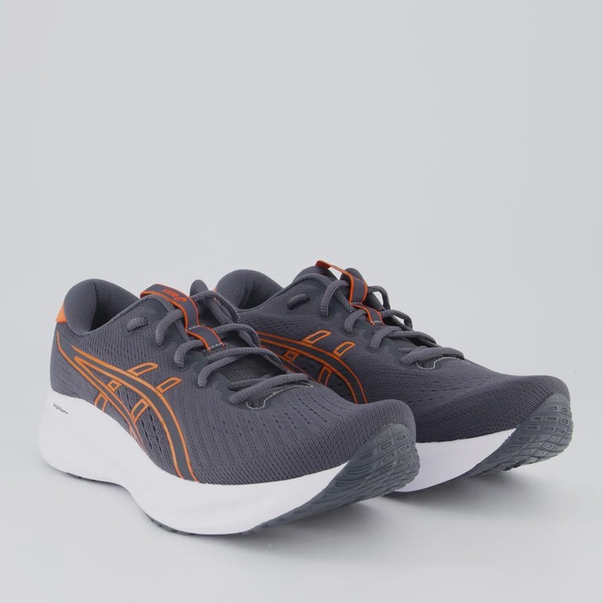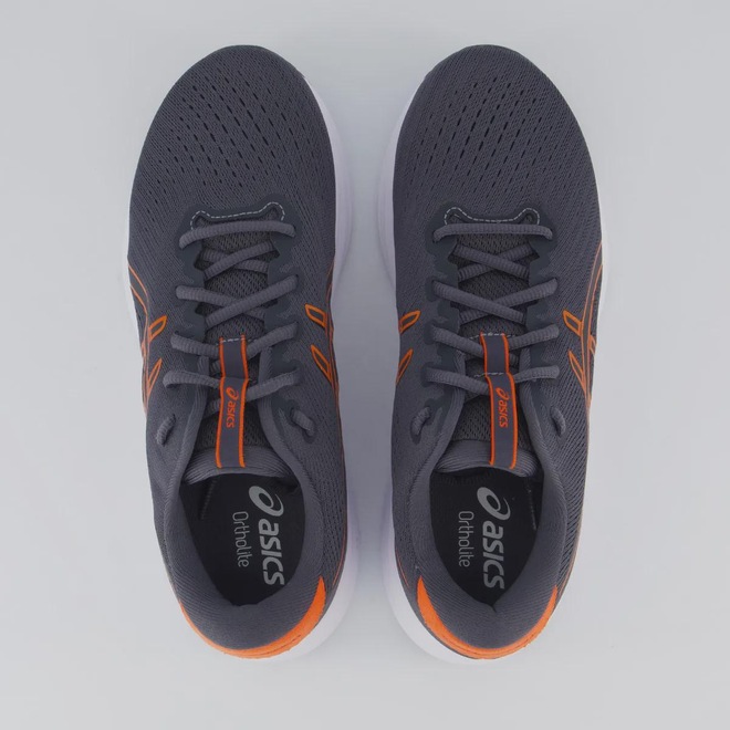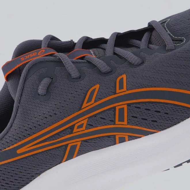 Tecnologias Gel®: Exclusiva tecnologia de amortecimento a base de GEL que proporciona máxima absorção de impacto das passadas e proteção. Amplifoam: Tecnologia de entressola mais leve que o EVA, oferecendo um excelente amortecimento, conforto, flexibilidade e durabilidade durante as corridas Composição cabedal (parte superior): Material têxtil respirável Palmilha: Em EVA; forrada, moldada e removível Forro: 100% Poliéster acolchoamento reforçado Solado: EVA com alto nível de amortecimento, colado Altura da Sola: 4 cm Lingueta: Macia e flexível Cor predominante: Cinza e Laranja Indicado para: Corrida Gênero: Masculino Origem: Nacional Ajuste: Cadarço Peso aproximado: 600g o par nº 40