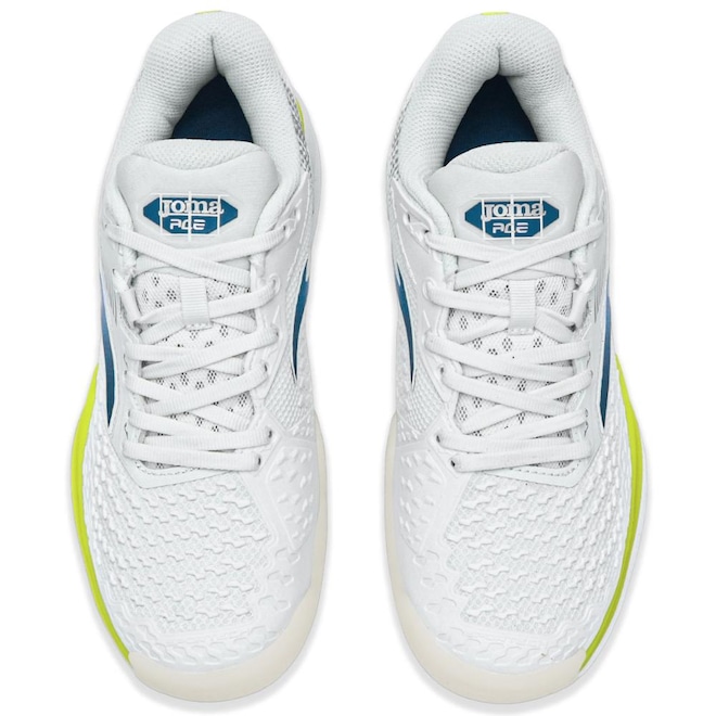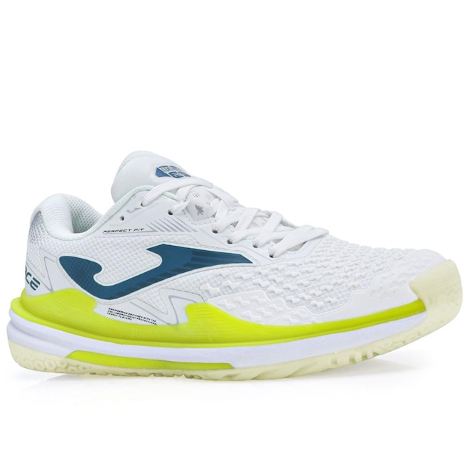 A Joma é uma marca internacional, mundialmente reconhecida pelos seus produtos de alta qualidade nos mais variados esportes, como, Tennis, futebol Americano, Corrida, Futsal, etc. Sempre oferecendo aos atletas produtos tecnológicos, confortáveis e preservando a segurança na hora da prática do esporte. O Tênis Joma Ace - All Court - Branco Azul e Amarelo foi projetado para oferecer máxima performance e conforto durante as partidas. Com um design inovador, ele proporciona suporte essencial nos movimentos rápidos, mantendo o pé confortável e fresco ao longo do jogo.