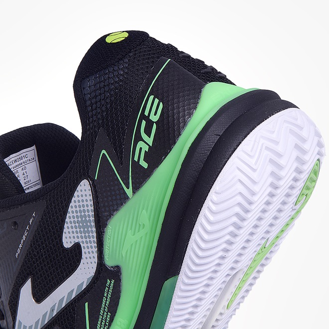 Melhoramos o lendário Ace, tornando-o ainda mais estável durante os movimentos frenéticos do tênis. Testado por jogadoras profissionais, que extraem o máximo desempenho. Parte superior em malha com um elegante acabamento personalizado em Jacquard, que proporciona leveza e respirabilidade. Essa vantagem foi otimizada com a tecnologia de perfuração VTS. O sistema termosselado JOMA SPORTECH mantém as propriedades de ajuste e suporte sem adicionar peso ao calçado. Reforço de borracha nas áreas mais sensíveis a atritos e impactos, formando o sistema PROTECTION. Entressola aprimorada. Construída em phylon, um material leve, flexível e com alta capacidade de absorção de impacto para um jogo confortável. A singularidade está no sistema de estabilidade dupla. De um lado, uma placa de carbono CARBON STABILIZER foi colocada na área central, evitando possíveis torções do calçado. Do outro, o duplo STABILIS reforça essa vantagem, reduzindo a ocorrência de possíveis lesões em giros e movimentos laterais. Sola de borracha DURABILITY com cravos ou para saibro. Proporciona a aderência necessária em superfícies escorregadias, expelindo a areia da sola, mas permitindo um deslizar suave na quadra sem dificuldades.