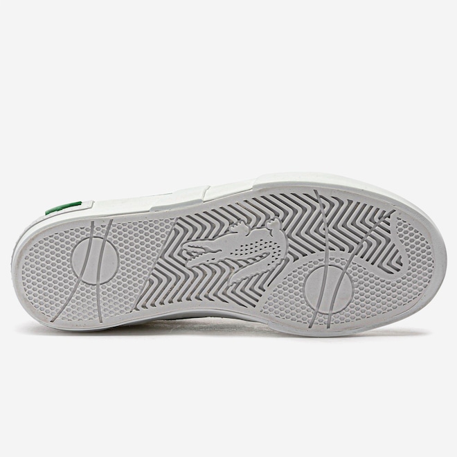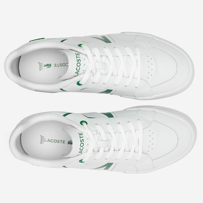 A marca em serigrafia na lingueta e o crocodilo no calcanhar reforçam o DNA da Lacoste.