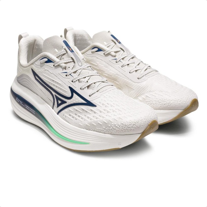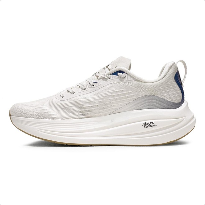 A principal inovação está na entressola equipada com Mizuno Enerzy NXT, um composto avançado infundido com nitrogênio, que potencializa a absorção de impacto e aumenta o retorno de energia a cada passo.