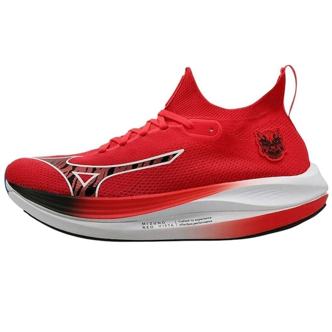 Inspirado na simbologia ancestral da máscara Oni, o Tênis Mizuno Neo Vista une tradição e modernidade para aqueles que buscam força e determinação em cada passo. Com um design arrojado, suas cores vermelha e azul representam a dualidade da batalha, paixão e intensidade contra sabedoria e equilíbrio. Desenvolvido para oferecer máxima performance em treinos de corrida, o tênis combina tecnologias avançadas como a entressola Enerzy Nxt, a geometria Smooth Speed Assist (SSA) e a placa Wave, proporcionando amortecimento, retorno de energia, estabilidade e propulsão a cada pisada.
