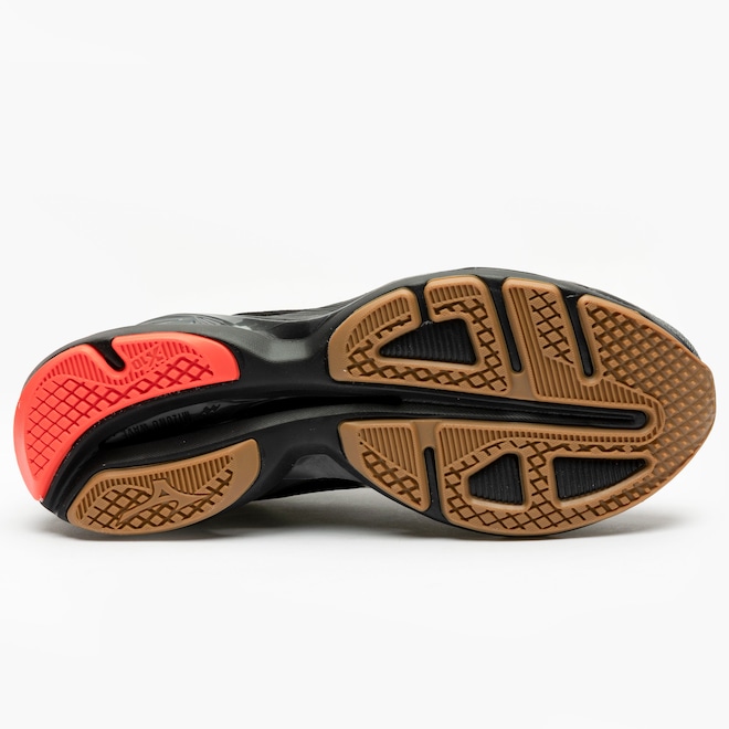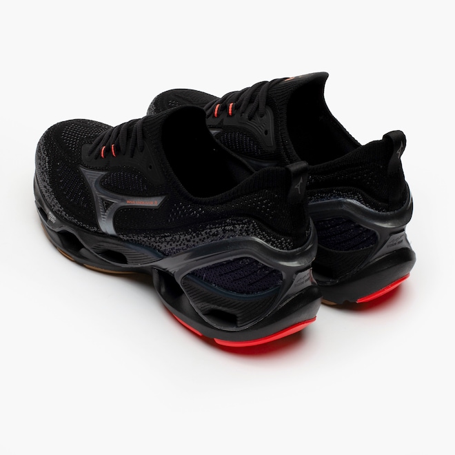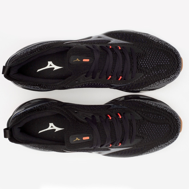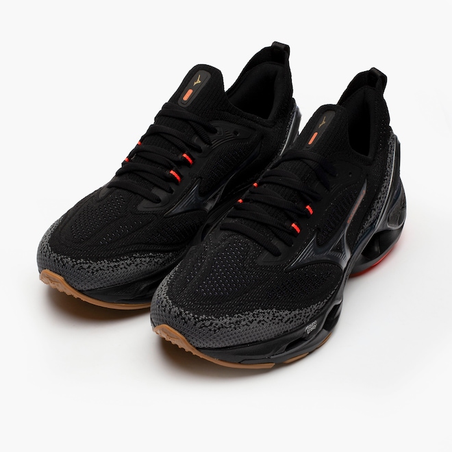 Mizuno Wave®: Nova geração da tecnologia Wave, que garante a efetividade inicial de amortecimento do tênis durante 500 km de uso, garantindo 100% da performance do sistema e proporcionando maior dissipação de impactos.