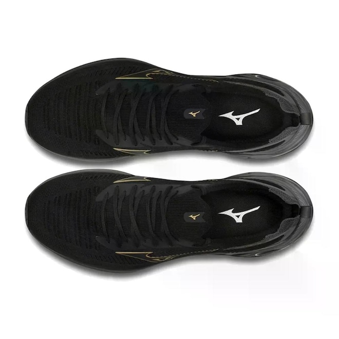 Mizuno Wave: Placa ondulada que proporciona amortecimento responsivo e estabilidade, distribuindo o impacto da pisada de forma eficiente.