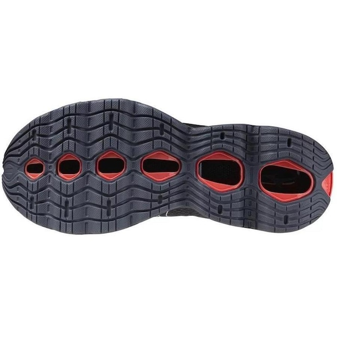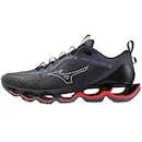 Placa Wave: A tecnologia consagrada da Mizuno é essencial para proporcionar amortecimento e estabilidade ao atleta, absorvendo e dispersando o choque do impacto.