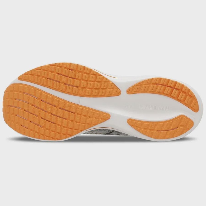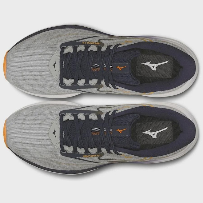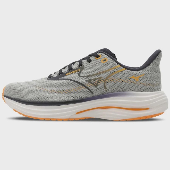 "Inspirado no movimento fluido das ondas, o novo visual transmite velocidade e leveza desde o primeiro olhar. A inovadora placa Wave e a aplicação de PU no cabedal acompanham o fluxo natural da pisada, do calcanhar até os dedos, garantindo transições suaves e uma corrida com mais impulso e dinamismo. Buscando a “simplicidade técnica”, cada detalhe do cabedal foi pensado para ter uma função. O tradicional logo RB volta a desempenhar um papel fundamental: agora conectado aos ilhós, ele reforça a estrutura do tênis e ajuda a manter o pé firme e bem posicionado durante toda a corrida. E para dar um toque de novidade, o Wave Rider estreia uma nova versão do logo, combinando tecnologia com um visual renovado e ainda mais marcante, tudo isso impulsionado pela entressola Mizuno Enerzy NXT com infusão de nitrogênio, que entrega amortecimento máximo com leveza e resposta incomparáveis."
