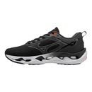 Mizuno Wave: Estrutura em formato de onda que estabiliza a passada e distribui os impactos, garantindo amortecimento consistente.