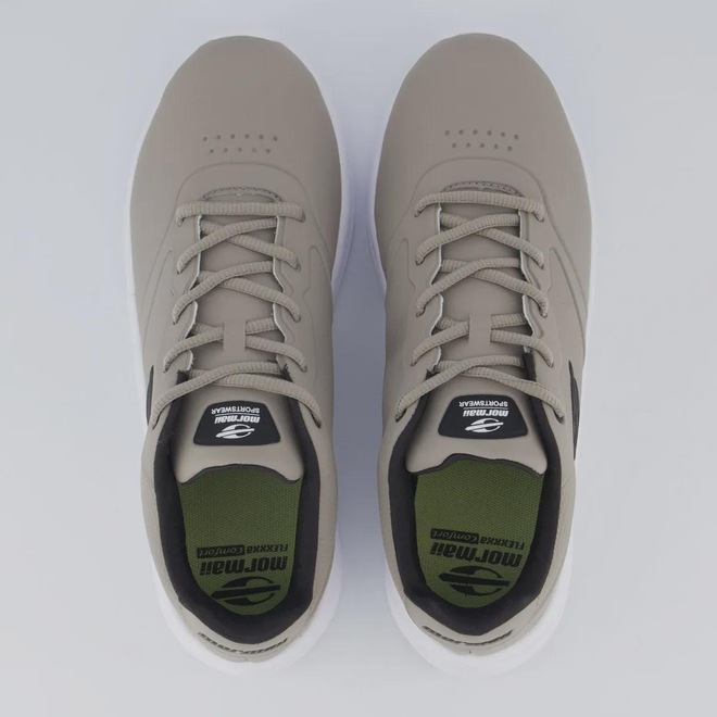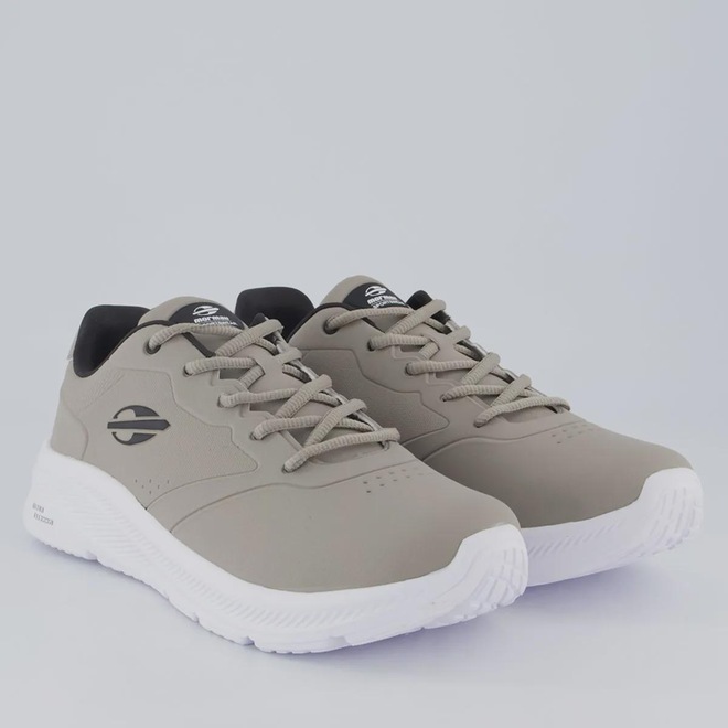 Composição cabedal (parte superior): Material sintético Forro: Material têxtil com acolchoamento reforçado Palmilha: Em EVA; moldada, forrada e removível Cor predominante: Bege Lingueta: Macia e flexível Indicado para: Casual Solado: Borracha Origem: Nacional Ajuste: Cadarço Peso aproximado: 500g o par n°40
