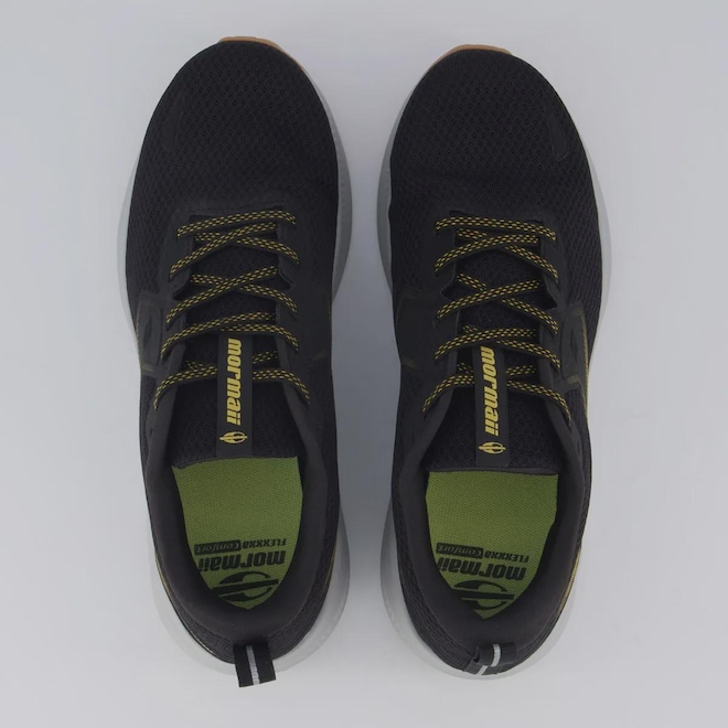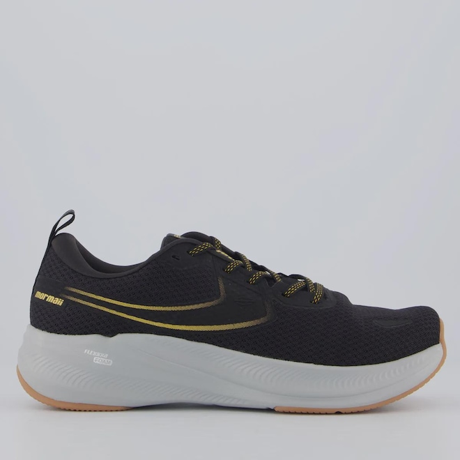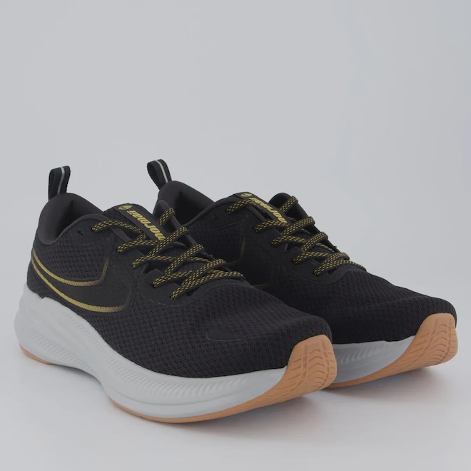 Composição cabedal (parte superior): Material têxtil Forro: Material têxtil com acolchoamento reforçado Palmilha: Em EVA; moldada, forrada e removível Cor predominante: Preta Lingueta: Macia e flexível Indicado para: Corrida Solado: Borracha Origem: Nacional Gênero: Masculino Ajuste: Cadarço Peso aproximado: 590g o par n°40
