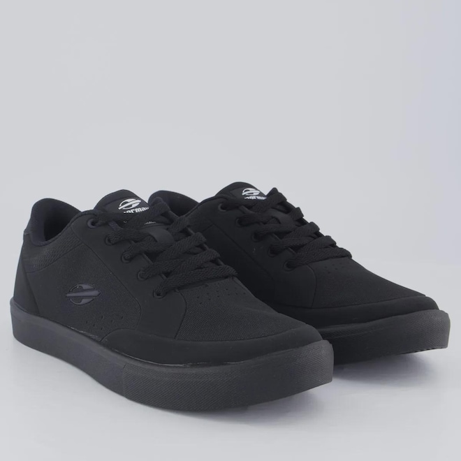 Composição cabedal (parte superior): Material sintéticoForro: Material têxtil com acolchoamento reforçadoPalmilha: Em EVA; moldada, forrada e removívelLingueta: Macia e flexívelSolado: Borracha, coladoCor predominante: PretaIndicado para: CasualAltura da Sola: 3 cmGênero: MasculinoOrigem: NacionalAjuste: CadarçoPeso aproximado: 560g o par n°40