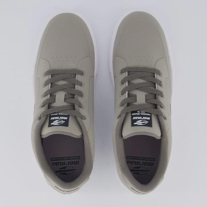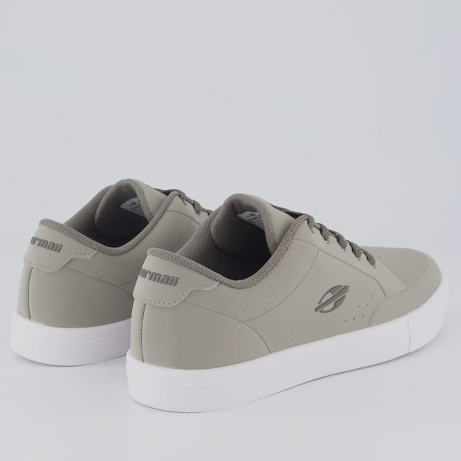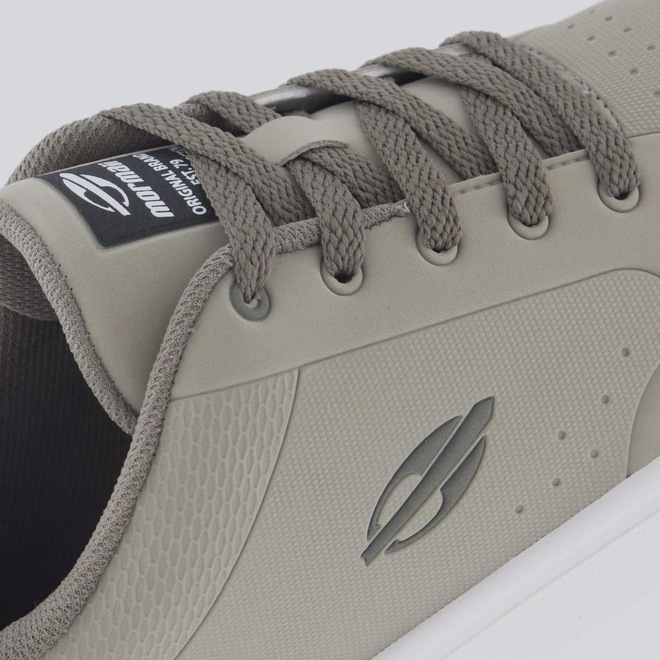 Composição cabedal (parte superior): Material sintético Forro: Material têxtil com acolchoamento reforçado Palmilha: Em EVA; moldada, forrada e removível Lingueta: Macia e flexível Solado: Borracha, colado de 3 cm Cor predominante: Cinza Indicado para: Casual Altura da Sola: 3 cm Gênero: Masculino Origem: Nacional Ajuste: Cadarço Peso aproximado: 560g o par n°40