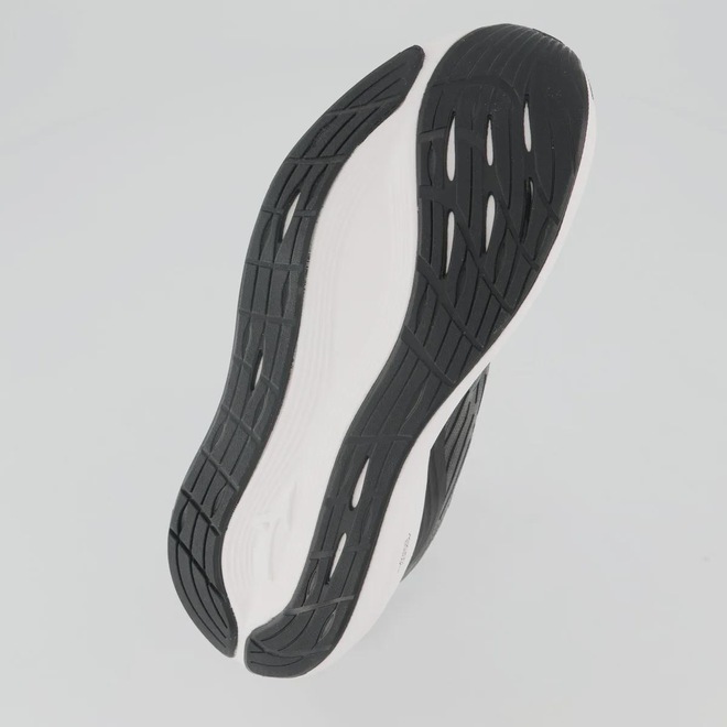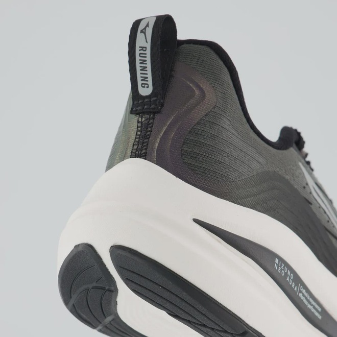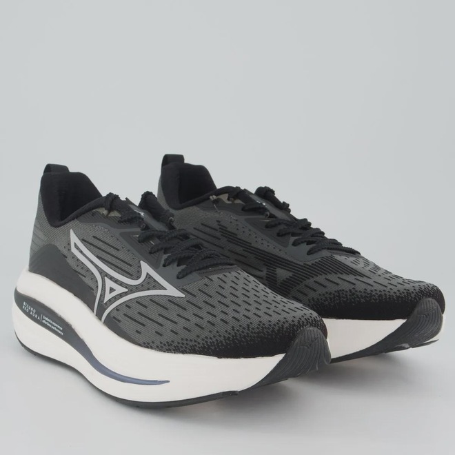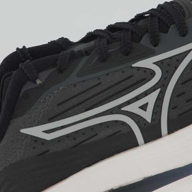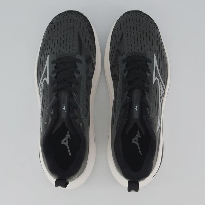 Mizuno Enerzy: Entressola: proporciona amortecimento mais macio e maior retorno de energia a cada passada Composição cabedal (parte superior): Têxtil com parte em sintético Palmilha: Em EVA forrado e removível Solado: Borracha antiderrapante, colado Altura da sola: 6 cm Forro: Material têxtil respirável Entressola: EVA leve e macio Cor predominante: Preta Indicado para: Corrida e treino Lingueta: Fina e flexível Gênero: Masculino Origem: Nacional Ajuste: Cadarço Peso aproximado: 550g o par n° 40