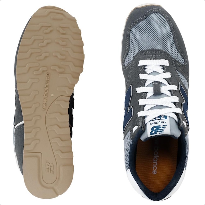 O design clássico com o "N" da New Balance na lateral confere um toque de estilo retrô ao tênis.