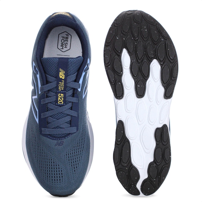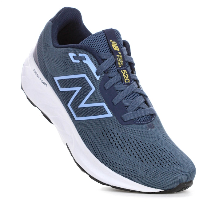 Conforto e estabilidade para seus treinos diários! Tênis New Balance Fresh Foam 520 V9 - Masculino Ficha Técnica: Marca: New Balancemarinho Cabedal: Mesh respirável com estrutura em TPU que proporciona suporte e ventilação ideal Gênero: Masculino Palmilha: EVA forrado e removível para maior conforto e facilidade na higienização Sola: Borracha antiderrapante com design que favorece a tração Fechamento: Cadarço Amortecimento: Tecnologia Fresh Foam para transições suaves e leveza nas passadas Estabilidade: Boa, com estrutura firme e entressola adaptável Lingueta: Acolchoada e flexível Tecnologias: Fresh Foam - amortecimento responsivo com retorno de energia Drop: 10 mm Entressola: Espuma Fresh Foam com design geométrico que se adapta ao movimento natural do pé Indicação: Ideal para atletas iniciantes ou intermediárias que buscam conforto em corridas ou treinos diários Detalhes: Logotipo da marca nas laterais, acabamento moderno, com visual elegante e discreto Descubra o equilíbrio ideal entre suavidade e estabilidade com o New Balance Fresh Foam 520 V9. Porque investir: Com tecnologia Fresh Foam, ele oferece uma passada leve e responsiva, ideal para quem busca performance com conforto. O cabedal respirável em mesh garante ventilação, enquanto a entressola adaptável se molda ao movimento do pé. Seu visual moderno combina com qualquer estilo, dentro ou fora das pistas! Conteúdo da embalagem: 1 par de Tênis New Balance Fresh Foam 520 V9 Masculino