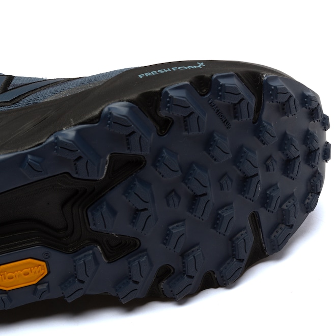 O modelo combina o amortecimento responsivo da tecnologia Fresh Foam X com a durabilidade e aderência do solado Vibram®, criando a proteção ideal para trilhas e terrenos desafiadores.