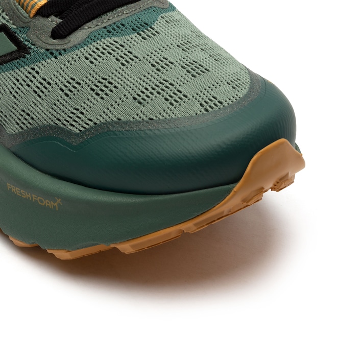 O modelo combina o amortecimento responsivo da tecnologia Fresh Foam X com a durabilidade e aderência do solado Vibram®, criando a proteção ideal para trilhas e terrenos desafiadores.
