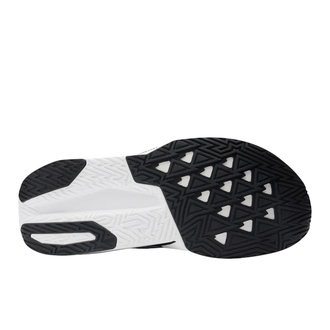 Solado remodelado, com adição de borracha na área dianteira para maior resistência ao desgaste, aderência e um desempenho coeso com a entressola elástica.