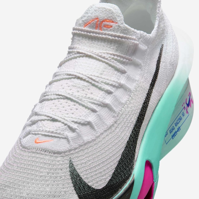 O Alphafly 3 é o nosso Alphafly mais leve de todos os tempos, apresentando uma placa de fibra de carbono ligeiramente mais larga para maior estabilidade, uma entressola de espuma ZoomX totalmente conectada para transições mais suaves e um cabedal Atomknit totalmente novo projetado para melhor contenção multidirecional e respirabilidade.