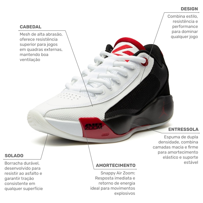 O Jordan Luka 77 foi criado para acompanhar o estilo de jogo versátil e intenso de Luka Dončić, entregando conforto, durabilidade e tração superior para quadras externas.