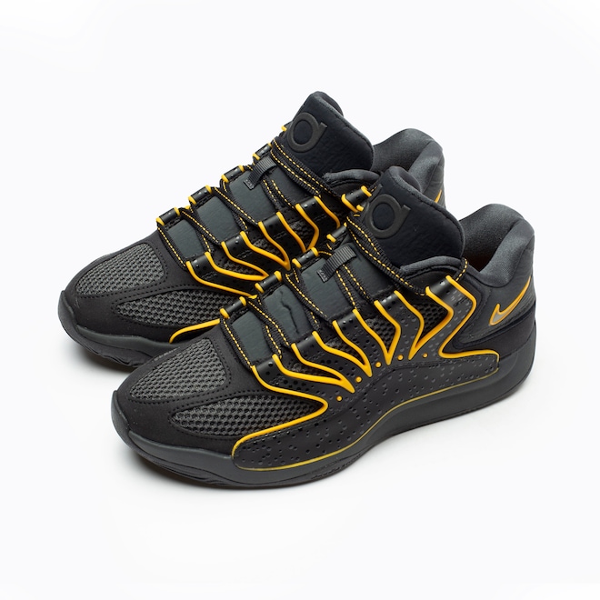 O maior dom de KD? Sua resistência. O Slim Reaper nunca se cansa, tanto em termos de paixão pelo jogo como de energia nos momentos decisivos. Um combo de amortecimento Zoom Air e Nike Air proporciona um amortecimento incrivelmente responsivo. E fizemos furos em todo o cabedal para ajudar a reduzir o peso e aumentar a respirabilidade, para que ele possa jogar basquete o dia todo.