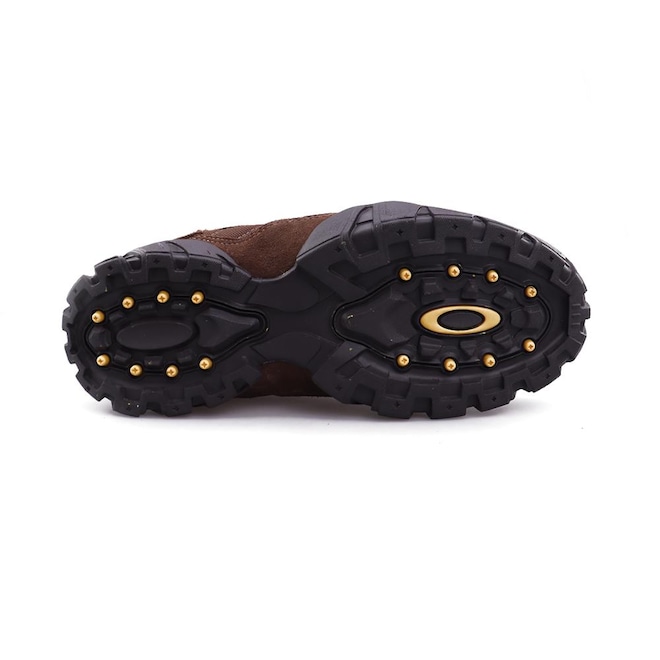 O pin de metal traz o visual clássico da Oakley enquanto o solado da marca traz ainda mais robustes.