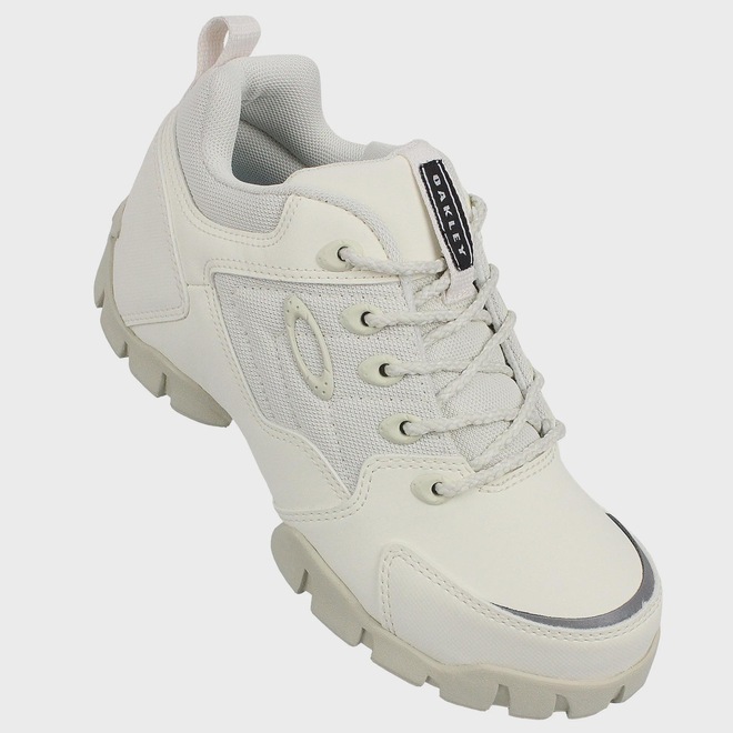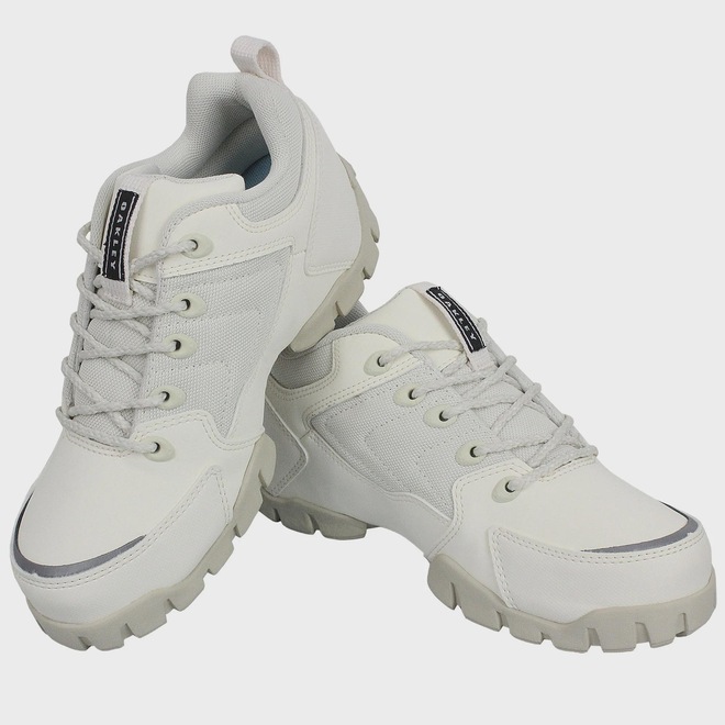 O Tênis Oakley Halftrack Low II Arctic White tem o cabedal produzido em couro resinado e lona. Logo Oakley em metal e ilhoses personalizados ,forro em tecido que absorve umidade