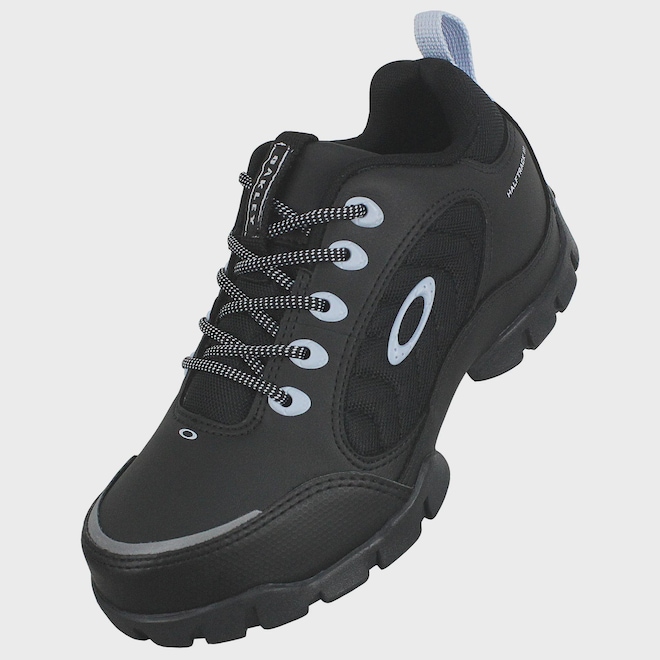 O Tênis Oakley Halftrack Low III Jet Black tem o cabedal produzido em couro resinado e lona. Logo Oakley em metal e ilhoses personalizados ,forro em tecido que absorve umidade