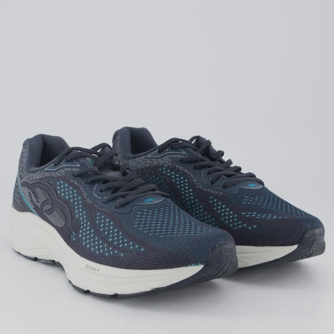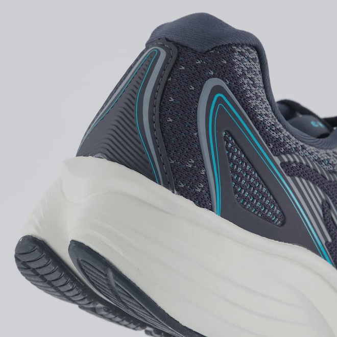 Eleva+: Tecnologia que explora o limite de expansão do EVA para alcançar máxima resposta, proporcionando o efeito trampolim, absorvendo o impacto da passada e transformando essa energia em impulsão.