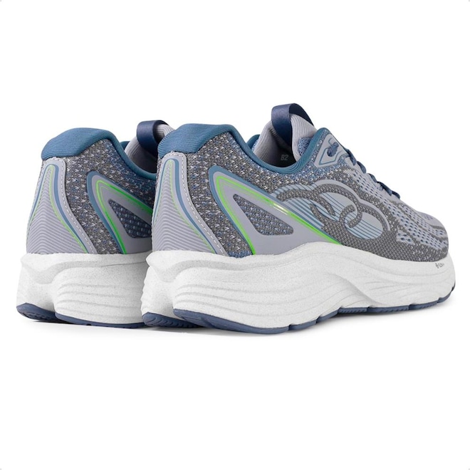Borracha Gripper garante um contato firme com o chão, e o desenho curvilíneo com pontos de contato distribuídos em seções favorecem a flexão e aderência do tênis.