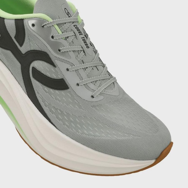 O Tênis Olympikus Corre Turbo conta com cabedal confeccionado em tecido OXILITE, uma tecnologia inovadora e flexível que combina a técnica de giro com fios de TPU e TPE, oferecendo resistência, maciez e leveza. A logo em TPU recebe pintura e detalhes em laminado, aplicados com a tecnologia HIGH FREQUENCY. A lingueta é desenvolvida em uma confortável combinação de tecido dupla frontura e espuma. O atacador serrilhado foi projetado para garantir mais eficácia na amarração, assegurando um ajuste preciso e seguro. O forro é feito de tecido poliéster com espuma, proporcionando maior conforto ao caminhar. O puxador traseiro, confeccionado em elastano e com arte gráfica, facilita o calce. A palmilha é composta por tecido poliéster e EVA, com aplicação gráfica. O solado utiliza a tecnologia NT-X 2.0, com entressola em TPE expandido com nitrogênio (SCF), o que garante nível máximo de amortecimento, alta resiliência, baixa deformação e extrema leveza ao tênis. Além disso, a borracha conta com a tecnologia GRIPPER, que oferece maior durabilidade, alta resistência e propriedades antiderrapantes. O modelo possui um drop de 8mm.