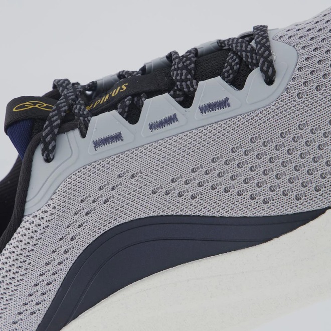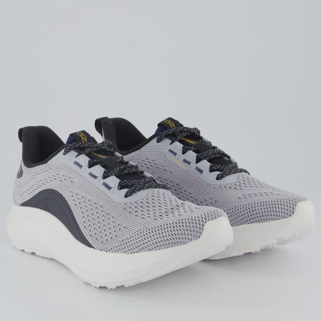 Tecnologias Eleva+: Tecnologia exclusiva que explora o limite de expansão do EVA para alcançar máxima resposta, absorvendo o impacto da passada e transformando essa energia em impulsão. Hypersox: Cabedal em formato de meia, extremamente leve e flexível. Fácil de calçar e com ajuste perfeito aos movimentos do pé. Composição cabedal (parte superior): Confeccionado em têxtil Palmilha: Em EVA e removível; facilita na higienização Forro: Revestimento respirável Solado: EVA antiderrapante Indicado para: Treino Cor predominante: Cinza Lingueta: Macia e flexível Gênero: Masculino Origem: Nacional Ajuste: Cadarço Peso aproximado: 570g o par n° 40