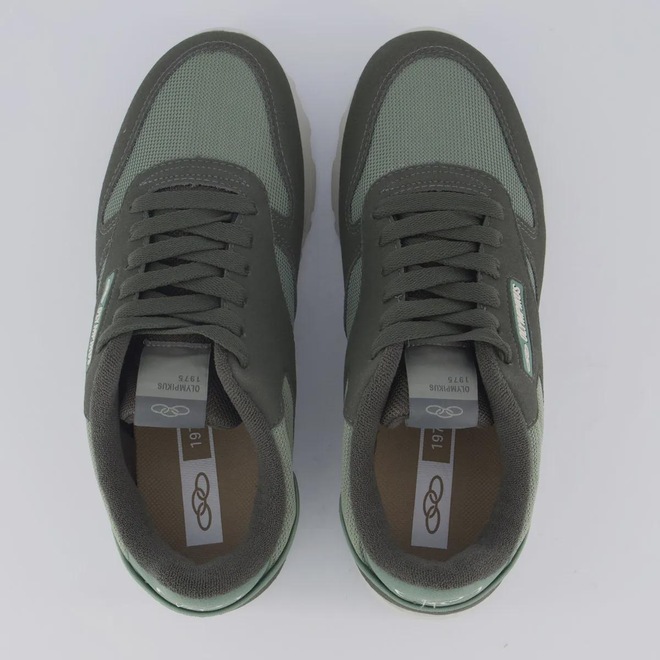 Composição cabedal (parte superior): Material têxtil com partes em sintético Palmilha: Em EVA forrada e removível; facilita na higienização Forro: Material têxtil com acolchoamento reforçado Solado e entressola: EVA macio e antiderrapante Lingueta: Fina e flexível Cor predominante: Verde Indicado para: Casual Origem: Nacional Ajuste: Cadarço Gênero: Masculino Peso aproximado: 440g o par nº 40