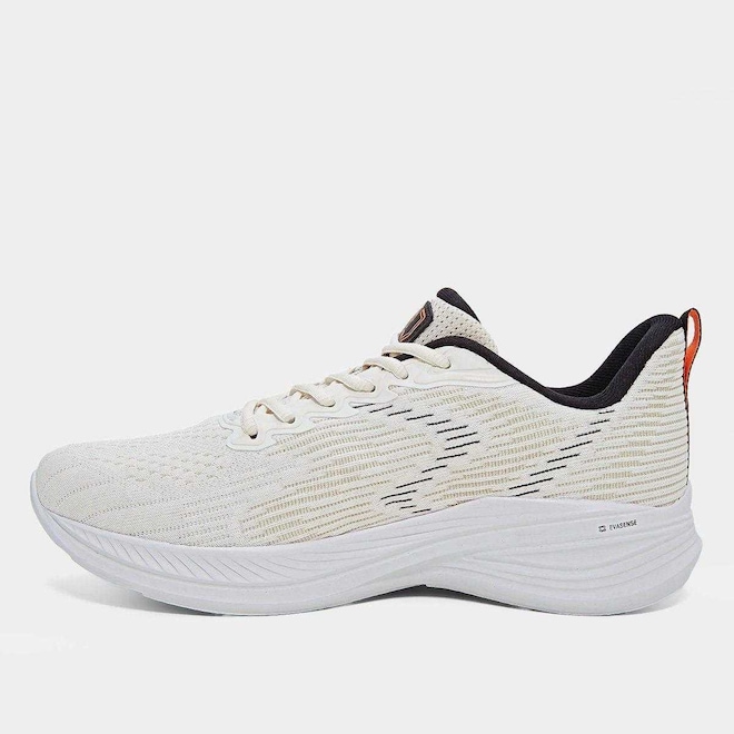 A parte superior do tênis é confeccionada em tecido mesh, que garante boa respirabilidade e leveza aos pés. O solado em EVA de alta densidade com tecnologia EVASENSE proporciona amortecimento de impactos e maior estabilidade nas pisadas.