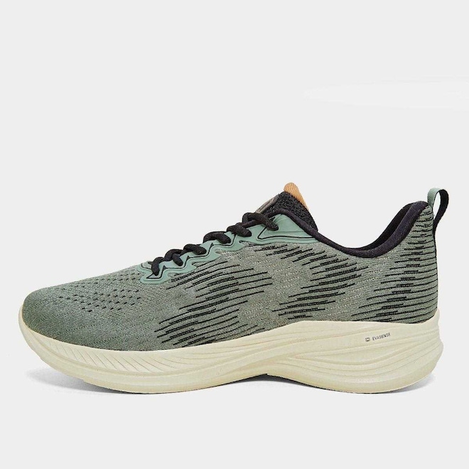 A parte superior do tênis é confeccionada em tecido mesh, que garante boa respirabilidade e leveza aos pés. O solado em EVA de alta densidade com tecnologia EVASENSE proporciona amortecimento de impactos e maior estabilidade nas pisadas.