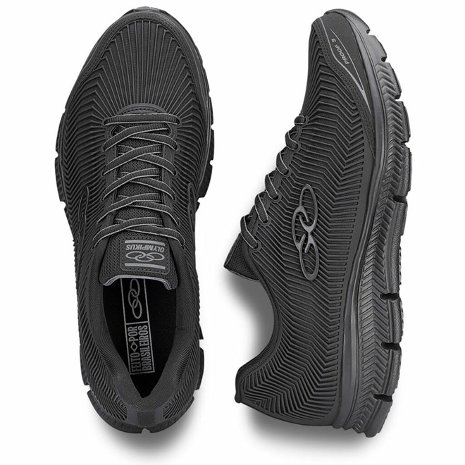 O Olympikus Proof 3 é o tênis ideal para quem busca conforto e alta durabilidade. Seu solado possui design com recortes verticais, que aumentam a flexibilidade, além da tecnologia de amortecimento Evasense, que proporciona leveza e maciez para os corres diários. O cabedal é confeccionado em tecido de poliéster, com a tecnologia Covergrid, o seu material é injetado diretamente no tecido, proporcionando maior proteção, resistência e durabilidade. Possui ainda forro com espuma e atacador bicolor, ambos compostos por tecido poliéster texturizado.