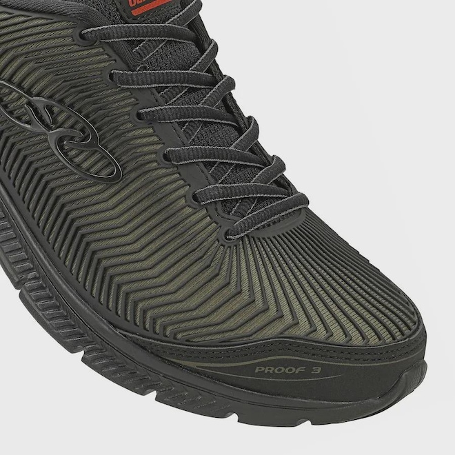 O Olympikus Proof 3 é o tênis ideal para quem busca conforto e alta durabilidade. Seu solado possui design com recortes verticais, que aumentam a flexibilidade, além da tecnologia de amortecimento Evasense, que proporciona leveza e maciez para os corres diários. O cabedal é confeccionado em tecido de poliéster, com a tecnologia Covergrid, o seu material é injetado diretamente no tecido, proporcionando maior proteção, resistência e durabilidade. Possui ainda forro com espuma e atacador bicolor, ambos compostos por tecido poliéster texturizado.