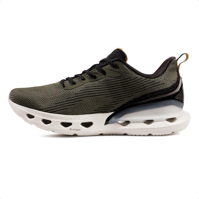 A entressola equipada com a tecnologia EVASENSE entrega amortecimento eficiente e responsivo, ideal para atividades do cotidiano que exigem conforto prolongado. Já a palmilha em EVA com perfurações promove ventilação interna, ajudando a manter os pés frescos mesmo após horas de uso.