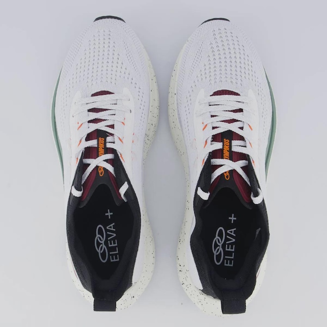 Eleva+: (Tecnologia exclusiva que explora o limite de expansão do EVA para máxima resposta, absorvendo o impacto e transformando essa energia em impulsão)