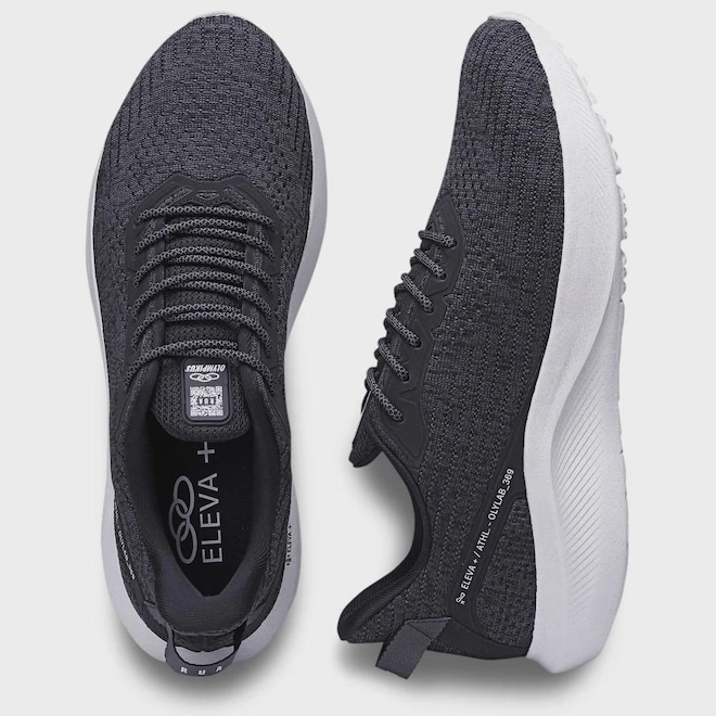 "O Olympikus Rua é o tênis ideal para as corridas leves. Seu solado possui a tecnologia de amortecimento Eleva+ que explora o limite de expansa?o do EVA, proporcionando o máximo conforto e maciez, dando aquela sensação de você estar pisando nas nuvens. Seu cabedal é confeccionado em tecido knit bicolor com tecnologia Hypersox, que proporciona respirabilidade,conforto, flexibilidade e leveza. Com design exclusivo, detalhes em high frequency com visual de alto relevo e aplicação gráfica. Conta ainda com forro de tecido poliéster com espuma, puxador em fita no traseiro para auxiliar no calce e atacador bicolor composto por tecido poliéster texturizado. Sua palmilha é plana e em EVA para evitar a absorção de líquidos com tecido de poliéster resistente e respirável. Possui ainda QR Code na lingueta e palmilha, com direcionamento para uma página exclusiva contendo todas as informações do produto."